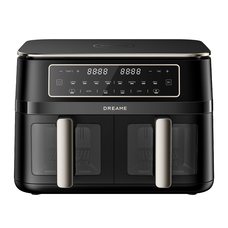 Dreame Tasti DZ30 выглядит как футуристичный объект в темных матовых тонах. Корпус сочетает термостойкий пластик и металлические акценты — всё с ощущением качественной сборки. Корзина прилегает плотно, а ручки имеют приятное сопротивление. Матовая поверхность не собирает отпечатки пальцев, поэтому печь всегда выглядит опрятно. Вы заметите, как плавно работает сенсор — он реагирует на легкое касание. Каждая корзина оснащена смотровым окошком — вы видите, как блюдо готовится в реальном времени, и можете вносить коррективы, если понадобится.